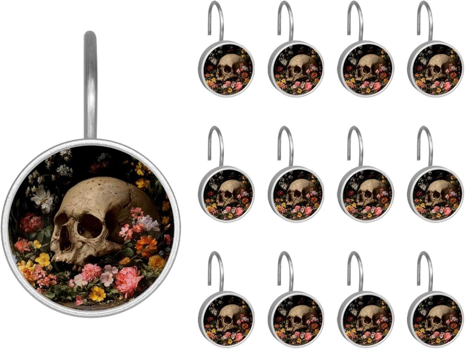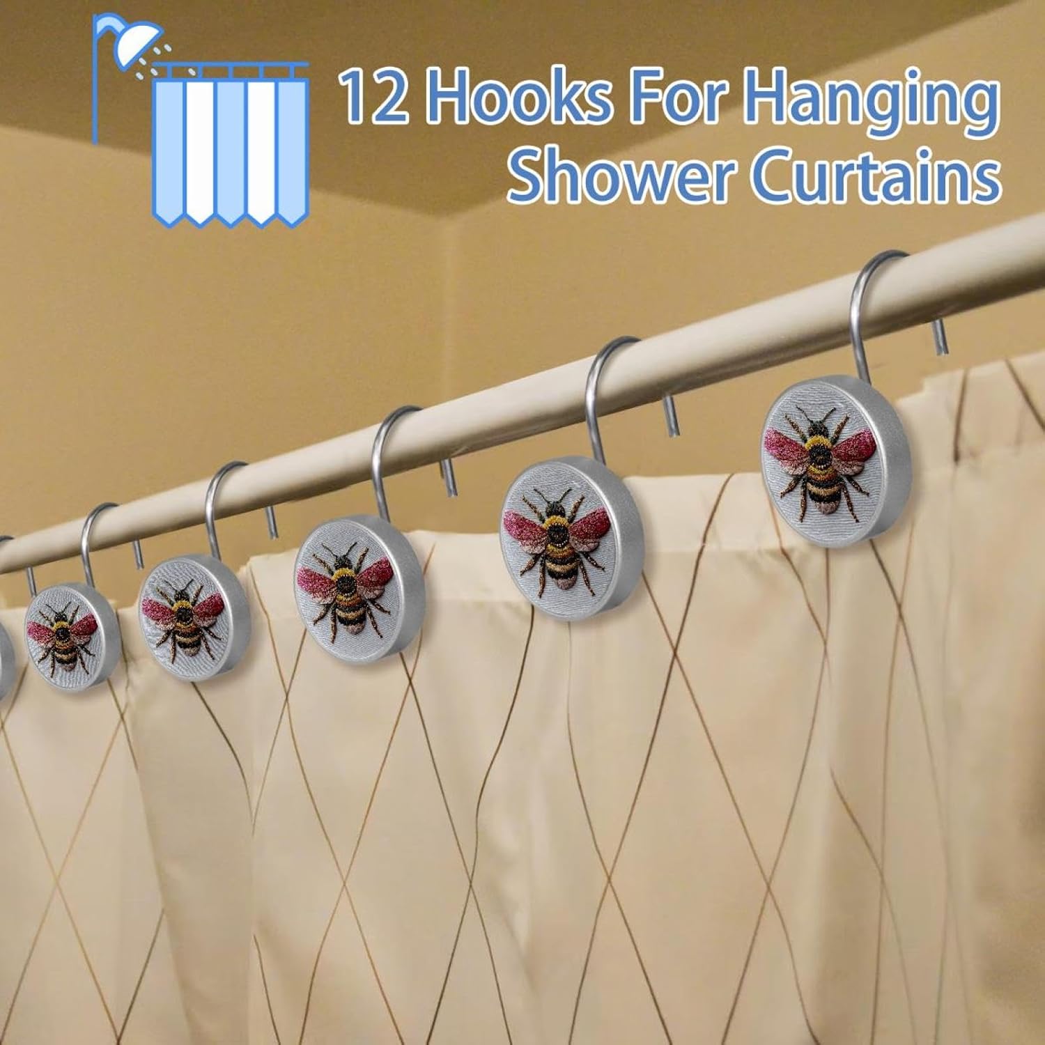 MATERIAL: glass, stainless steel. These shower curtain hooks can be decoration bathroom and will be long-lasting.12 pieces of shower curtain hooks, round crystal glass decoration, printed patterns, silver hooks to match various styles of bathroom shower curtains. SIZE: Crystal glass diameter of round shower curtain hook is 1.45x1.45in/ 3.7x3.7cm. The shower curtain hooks diameter is about 1.1in, 12 pieces shower curtain hooks are suitable for rod of 8-28mm(0.3"-1.1"). RUST RESISTANT:Shower hooks are made of stainless steel and crystal glass, which is durable, rust-proof and corrosion-resistant, it will not rust suitable for wet bathroom environment. EASY TO INSTALL:Hand the shower curtain hooks hold securely on straight or curved shower curtain rods,slid easily and smoothly. Easy to install and decorate your bathroom. BEAUTIFUL AND ELEGANT:Beautiful Love hook add charming scenery for your bathroom, baby room, bedroom, living room, and the gorgeous style is easy to match with any kinds of bathroom shower curtain. EASY GLIDE: Open and close your shower curtain quickly and easily with the Shower Hooks, easily glides on shower curtain rods and tension rods. No snagging; no effort; no hassle PACKAGE: 12 shower curtain hooks in a pack.The bathroom curtain hook has a smooth appearance and can be hung on the pole to pull it at will. Special price 12 sets to meet your needs.