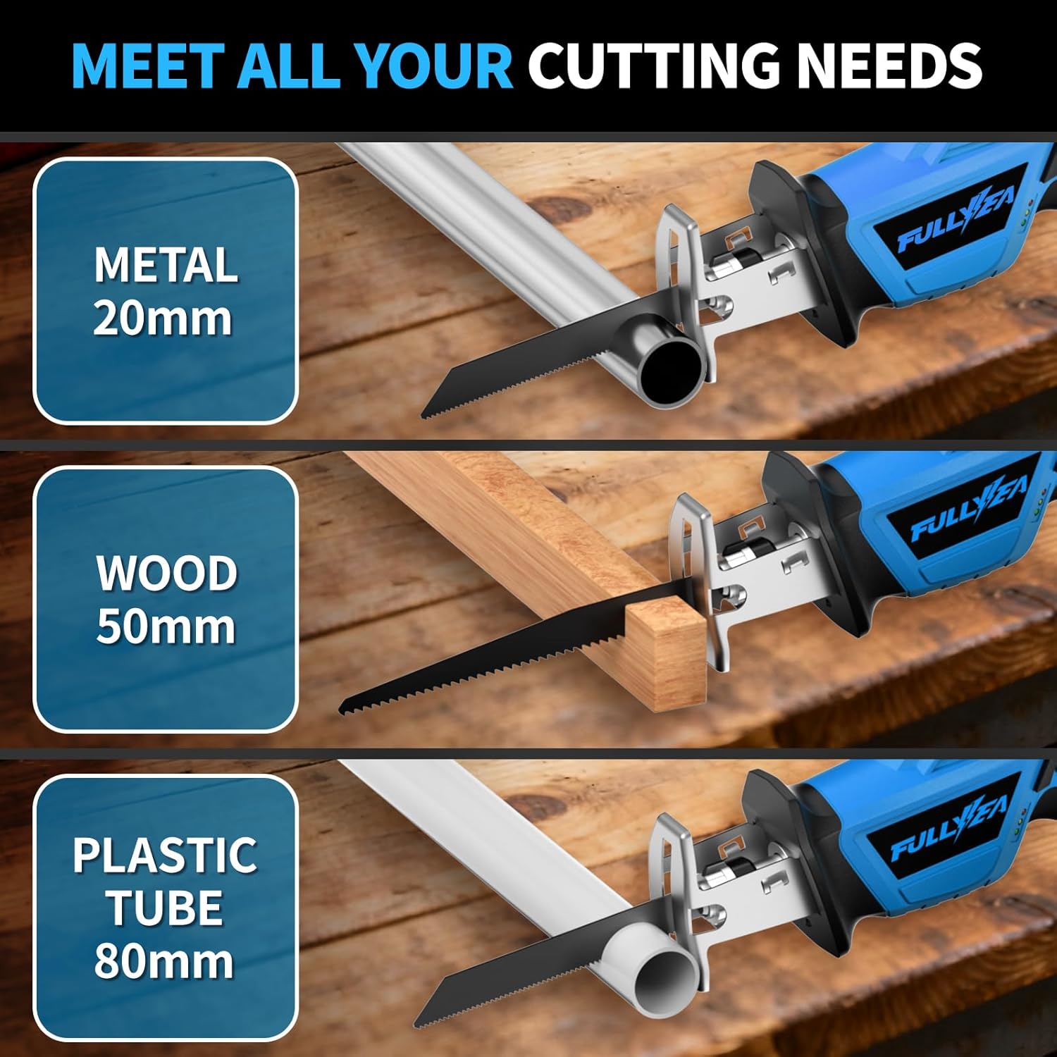 | Included Components | ➤ 1 x Cordless Reciprocating Saw, ➤1 x Quick Charger, ➤1 x User Manual, ➤2 x 2.0Ah Li-on Battery pack, ➤4 x High-Quality Saw Blades |