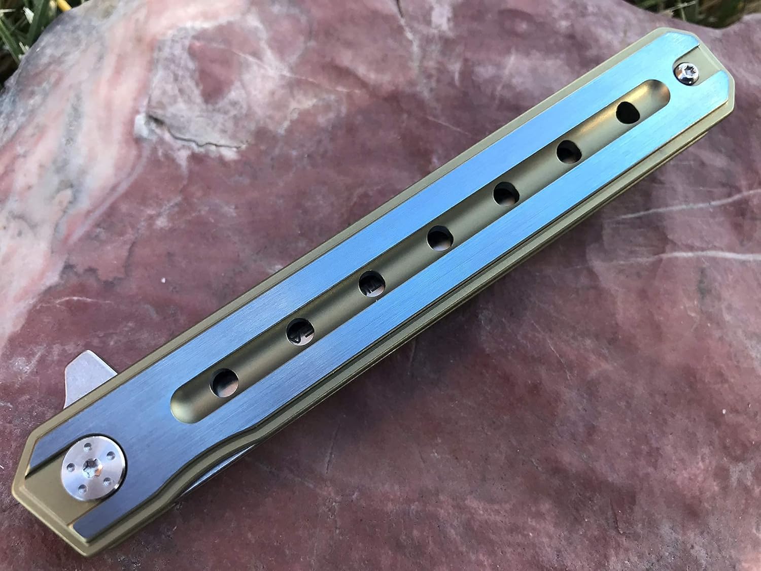 **TacticalGearz Full Tc4 Titanium EDC Pocket Knife! High Quality, D2 Steel Blade with Tanto edge! Perfect size for EDC................ What is D2 Steel?...D2 Tool Steel is a versatile high-carbon, high-chromium, air-hardening tool steel that is characterized by a relatively high attainable hardness and numerous, large, chromium-rich alloy carbides in the microstructure. These carbides provide good resistance to wear from sliding contact with other metals and abrasive materials.